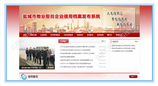 在盐城市住房和城乡建设局指导下,为了满足盐城市住房和城乡建设局对物业服务企业进行从业主体管理、项目管理、维修资金管理、信用管理,建立动态管理与信用管理相结合的市场监管模式,做好信息统计分析和发布工作的需要,进一步提升本市物业服务企业监管工作水平和信息化水平,组织开发了《盐城市物业服务企业信用档案发布系统》目前平台已在盐城市全面应用,涵盖市县级用户53个、街道用户120个、企业用户600个、业主用户190450个。系统上线以来,获得了一致好评。