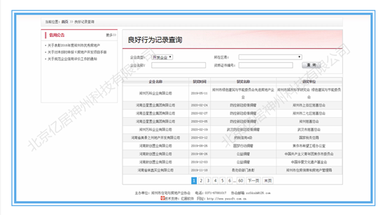 该平台主要用于对物业企业和执(从)业人员的基本情况、管理人员情况、项目情况、良好行为、不良行为等情况进行动态跟踪和管理,建立物业企业和执(从)业人员信用档案数据库,动态发布物业企业信息和信用档案有关信息,接受社会对物业企业行为和执(从)业人员的监督,加强政府对物业企业监管,提高管理工作的透明度和物业企业和执业人员的社会公信力,形成公平竞争的物业服务企业环境。从“企业基本信息管理”、“企业信用评测管理”、“企业诚信档案管理”、“企业信用监督”这四个方面全面构建企业诚信监管体系。