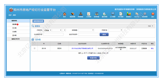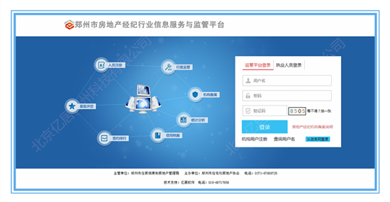 在郑州市住房保障和房地产管理局指导下,积极推进“互联网+”政务服务,基于全市房产交易管理平台和市政务信息资源共享平台,充分利用“互联网+”和“大数据”技术,以房地产经纪从业主体为基础,以房地产市场大数据为依托、以业务办理为主线,涵括市、区房地产市场监管主要业务职能,打造覆盖市、区、企业、执(从)业人员和社会公众的网络化监管和服务体系,实现服务政府、服务社会、服务行业为目标的房地产经纪监管全覆盖,构建以备案管理为支撑,以信息归集共享为基础,以信息评价和公示为手段,以信用监管为核心的市场监管机制。组织开发了《郑州房地产经纪行业信息服务与监管平台》目前平台已在郑州市全面应用,涵盖市级用户20个、县级用户70个、企业用户3000个、系统上线以来,获得了一致好评。